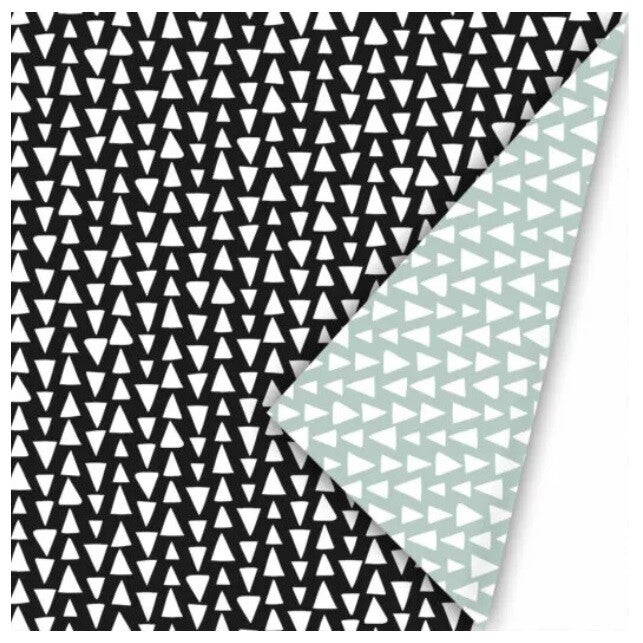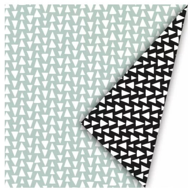 - Ethnic Triangles is een fijn cadeaupapiertje met een repeterend driehoekjes patroon op beide zijden. Op de voorzijde uitgevoerd in het zwart/wit en op de achterzijde in het salie/wit.