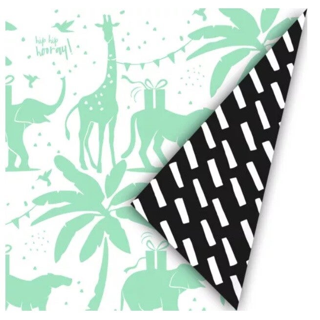 Pak je kadootje hip en liefdevol in met dit prachtige dubbelzijdig vrolijk cadeaupapier met dierenprint en streepjes.