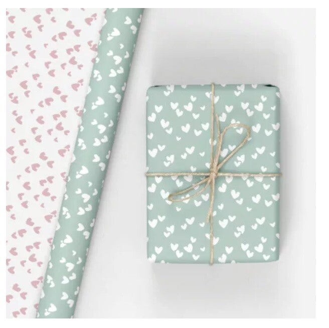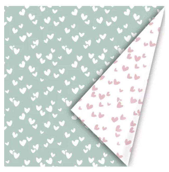 Kadopapier dubbelzijdig Hartjes Mint, Roze en Wit | 50x300cm