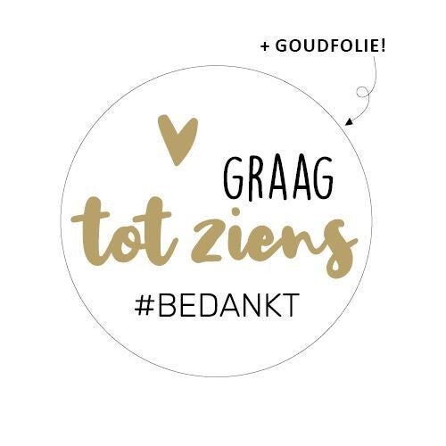 - Wittsticker met tekst 'Graag tot ziens #Bedankt' met goudfolie
