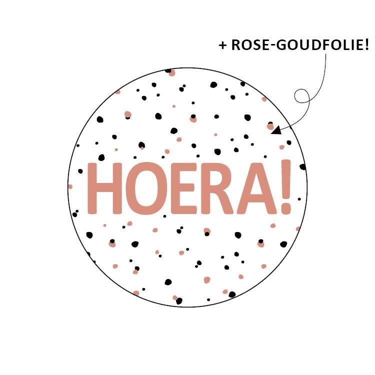 - Witte sticker met tekst 'HOERA' in rosegold