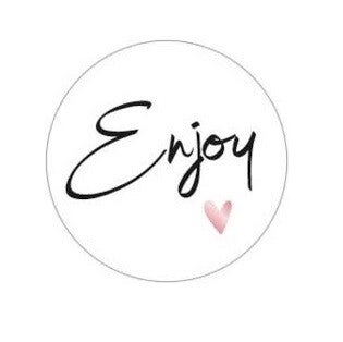 - Witte sticker met zwarte tekst 'Enjoy' met rosegold hartje