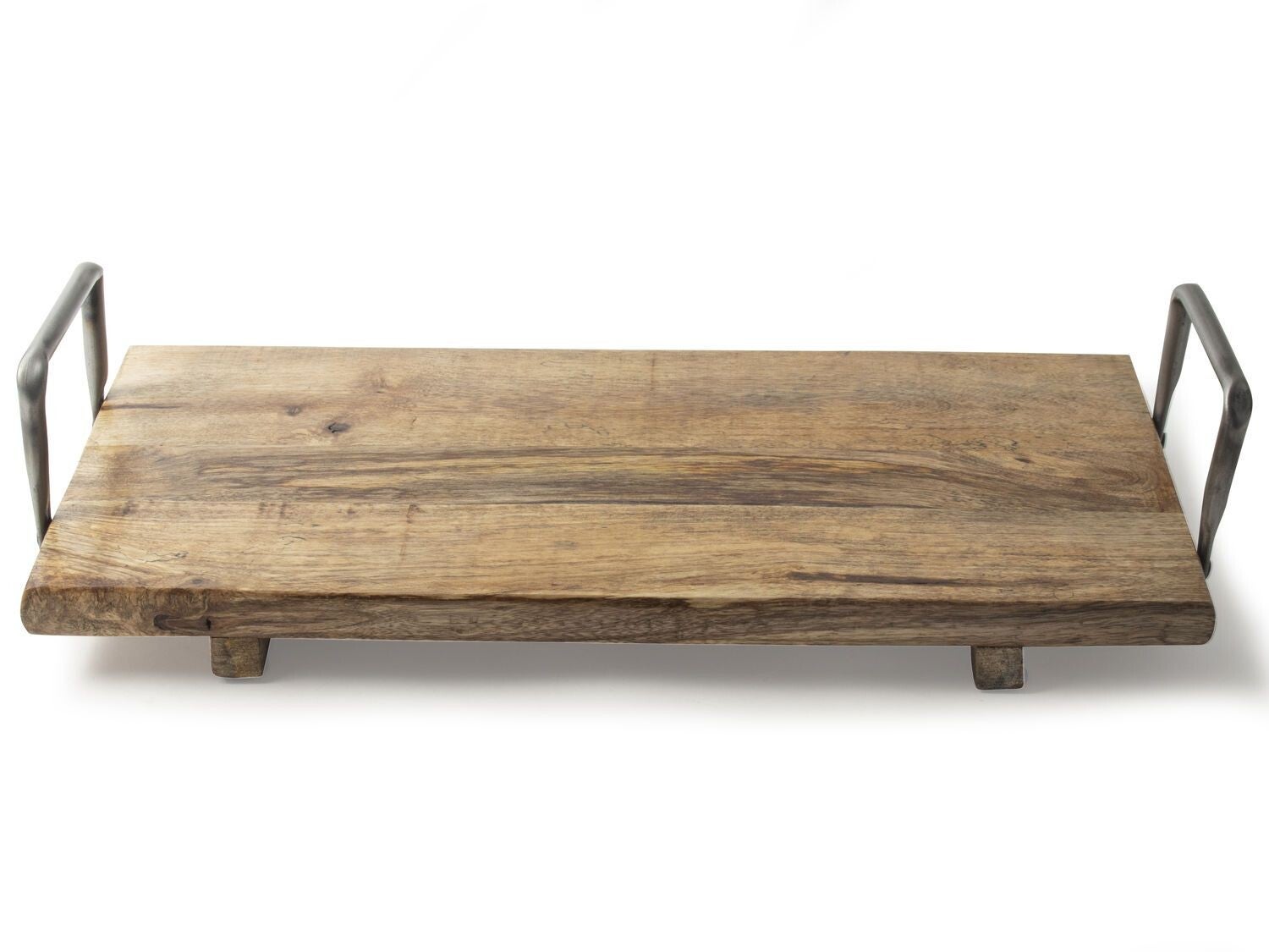 Mooie mangohouten plank met handvasten, leuk ter decoratie neer te zetten met kaarsen etc.
