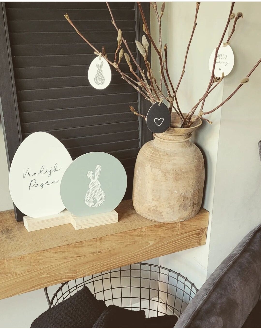 In deze eieren zit bovenaan een gaatje zodat je deze Paasversiering makkelijk met een touwtje aan je paastakken kunt hangen. Dat ziet er gezellig en sfeervol uit!