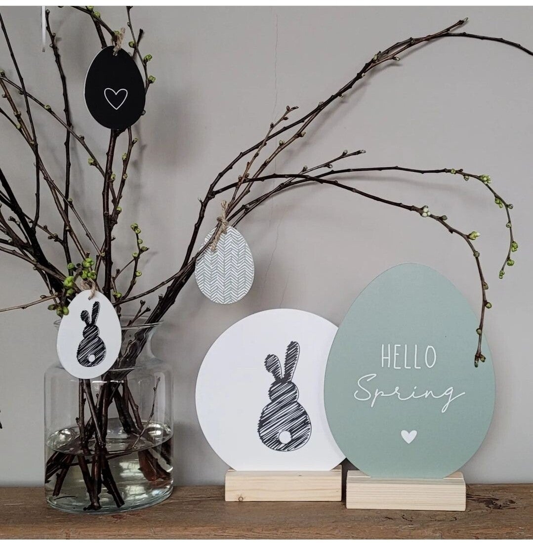 Setje Groene hangers in de vorm van een ei voor in de Paastakken